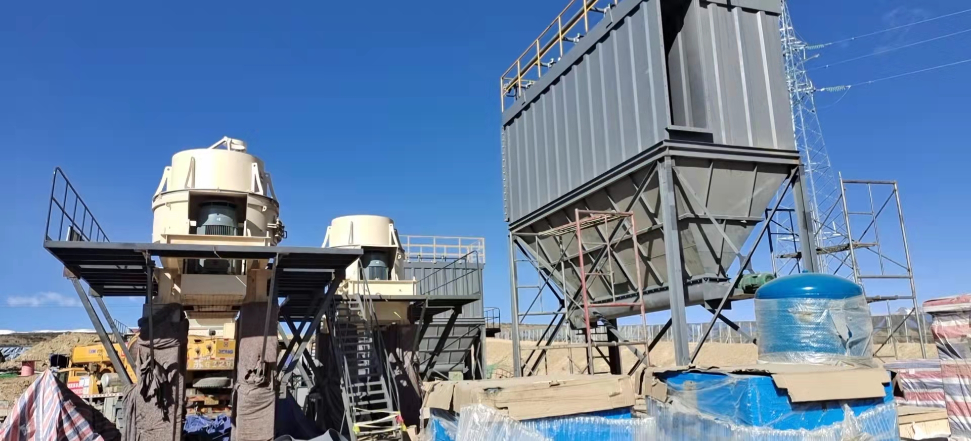 該項(xiàng)目位于甘孜州理塘縣,海拔約4300米。砂石廠加工成品骨料生產(chǎn)總量為776萬噸,礦石種類為灰?guī)r。系統(tǒng)干法生產(chǎn),各個(gè)車間全封閉,配套除塵降塵系統(tǒng)。